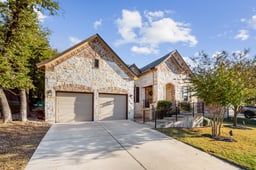 419 Ancient Oak Way feels like a home designed for comfort, ease, and a sense of place—set in Blanco Vista’s coveted Northwoods section, where mature trees and former model homes define the streetscape. Inside, the layout strikes a thoughtful balance between openness and privacy. The three bedrooms each have their own space and full bathroom, creating a natural flow for daily living, guests, or multigenerational needs. A dedicated office sits quietly at the front of the home, while a formal dining room offers an inviting setting for larger gatherings. The 3-car garage adds everyday practicality without compromising curb appeal. The main living area is anchored by 12-foot ceilings and hardwood floors that extend through the common spaces, giving the home a warm, substantial feel. The kitchen opens easily to both the dining room—connected by a butler’s pantry—and a casual breakfast area, making it an easy place to start the morning or host friends. Granite counters, a gas cooktop, and generous storage support both simple meals and weekend cooking. The primary suite is tucked into its own corner of the home, offering a spacious bath with a soaking tub, walk-in shower, and dual vanities. A guest suite with its own private bath ensures visitors feel comfortable and welcomed. Outside, the large enclosed covered patio becomes a true extension of the living space, set against beautiful landscaping and the quiet backdrop of the Northwoods. With its careful maintenance, quality finishes, and single-story design, this home offers an elevated way to enjoy one of San Marcos’s premier master-planned communities.